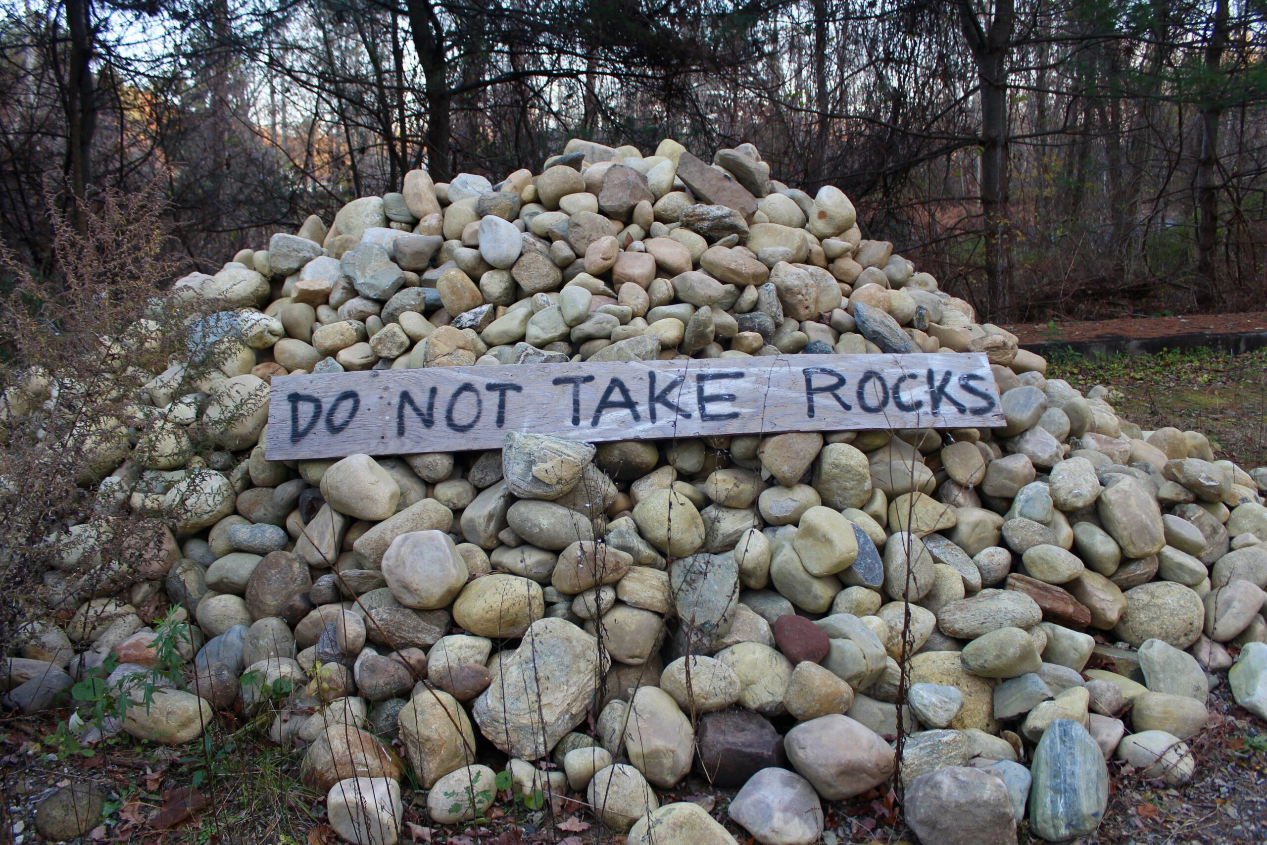 Tas de roches avec mention de ne pas en prendre.